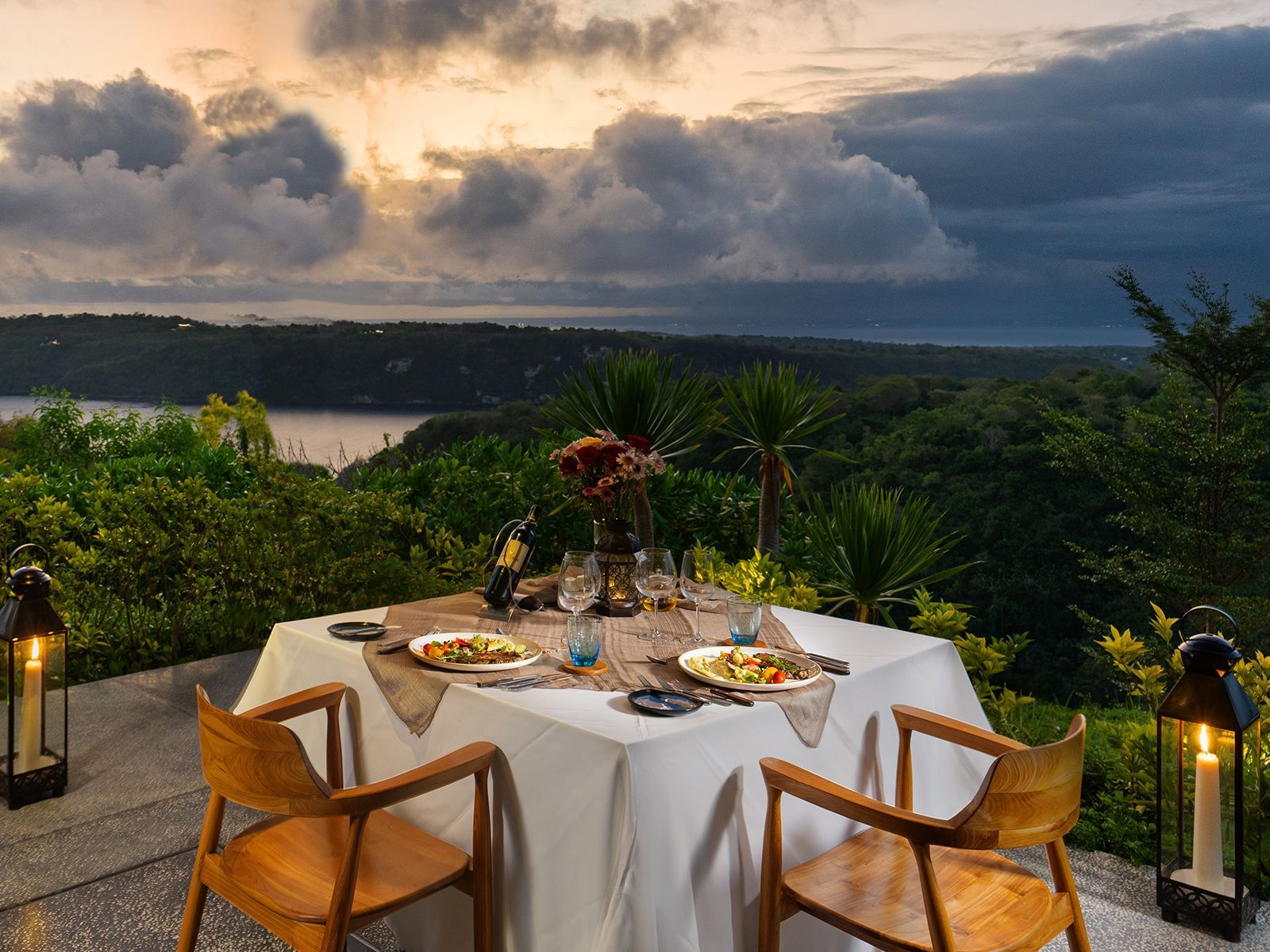 • 1 time 3 course poolside romantic dinner under the stars for 2 persons with 1 time 1 bottle of local wine