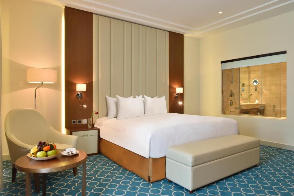 Unwind in this stylish suite with a separate living room, plush king bed, chic furnishings, and a balcony for a tranquil escape.