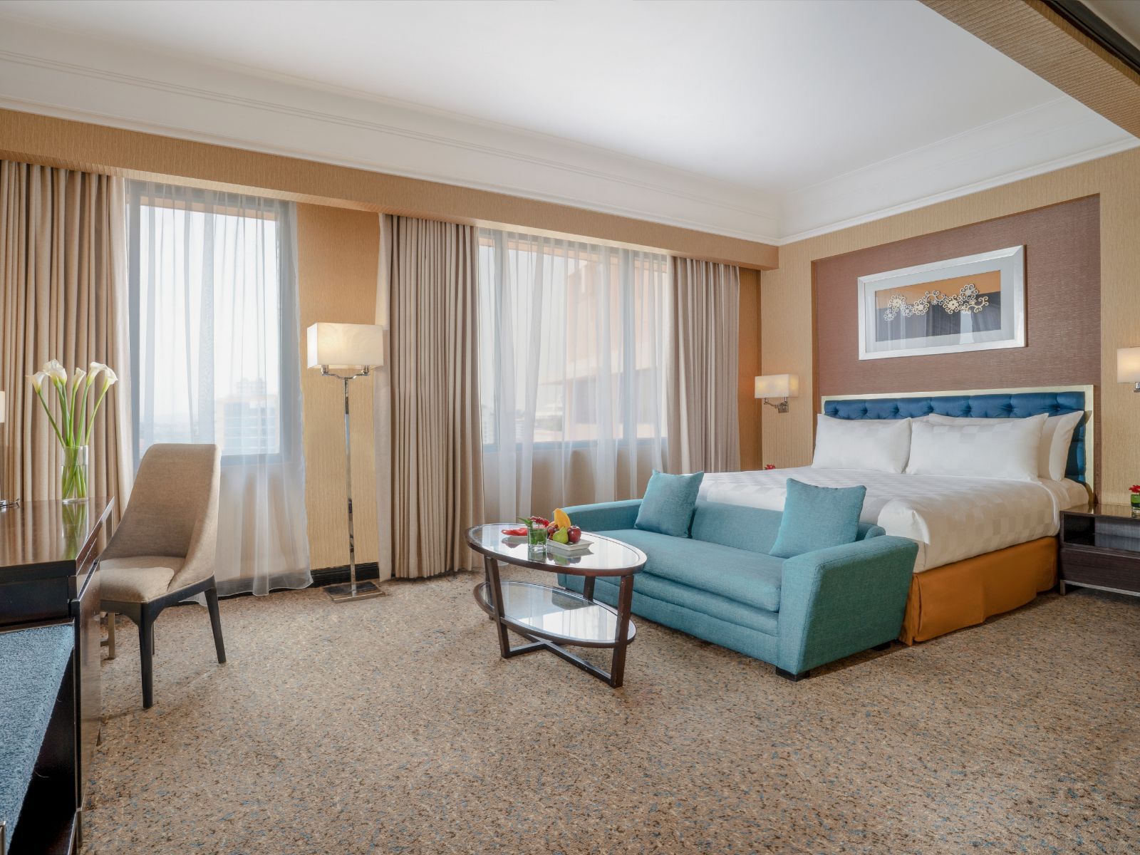 Unwind in our 39 sqm room with stunning views, elegant details, bathtub and shower, high-speed Wi-Fi, and Executive Lounge access.