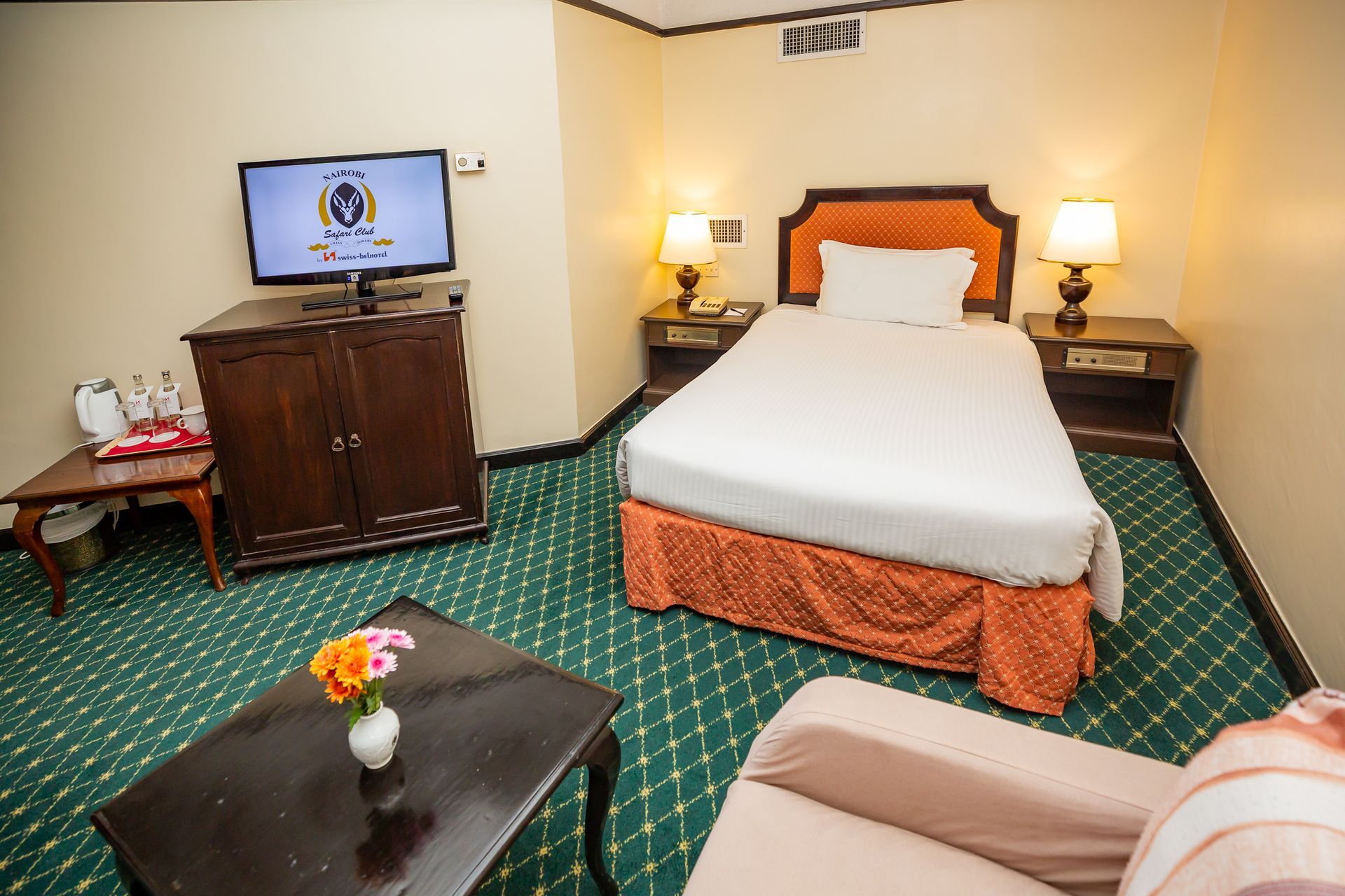 Unwind in our Studio Suite with a queen bed, lounge, work desk, and free Wi-Fi in central Nairobi.
