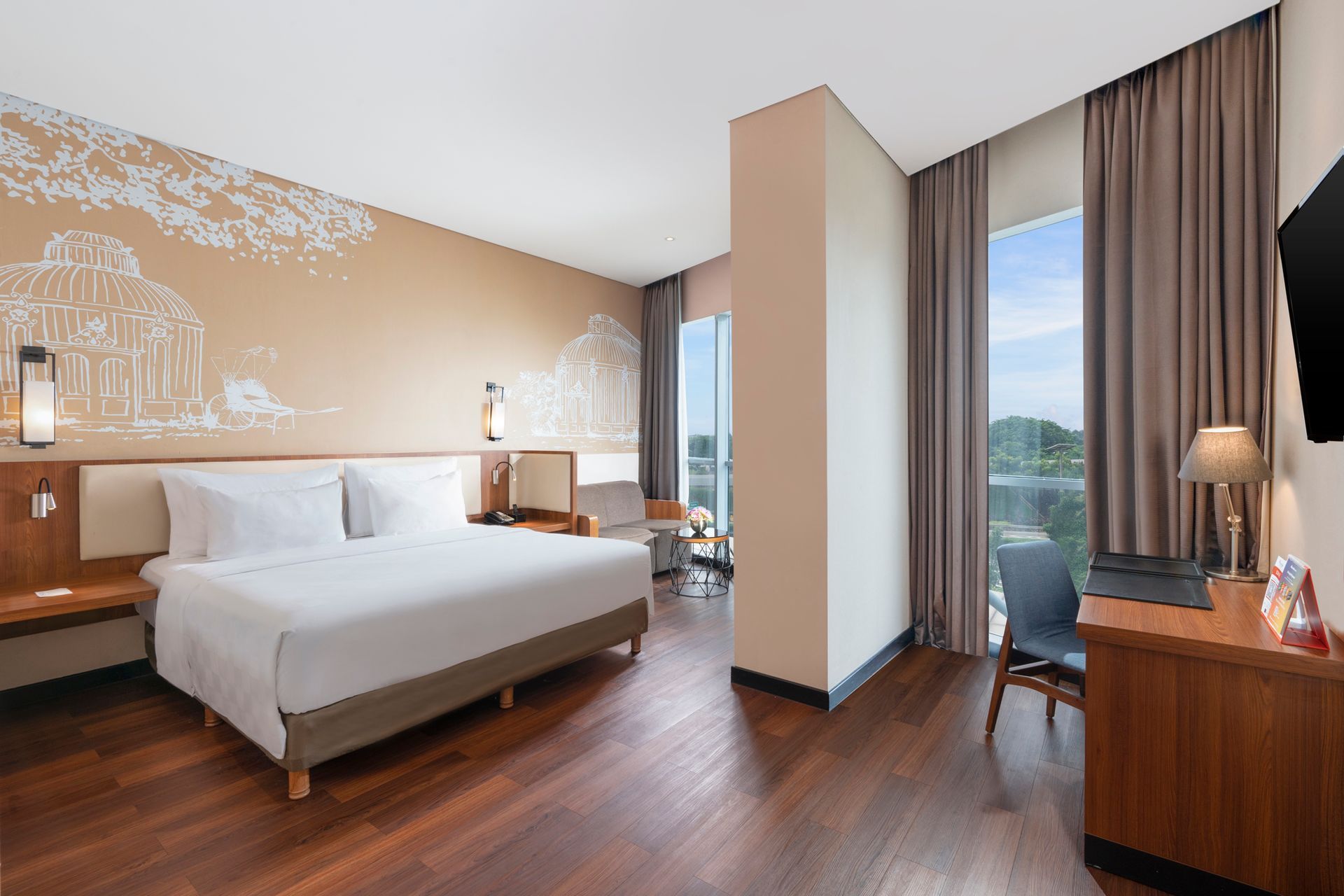 Elevate your stay in our Premier Suite—your stylish home away from home with a lounge, kitchen, and work space.
