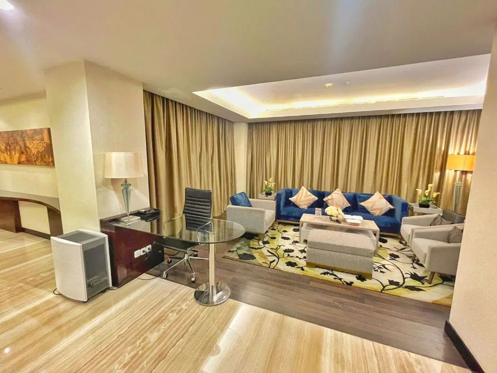 Experience the pinnacle of luxury in our 106 sqm Presidential Suite—separate living room, private bedroom, dining area, Jacuzzi, and premium amenities for ultimate comfort.