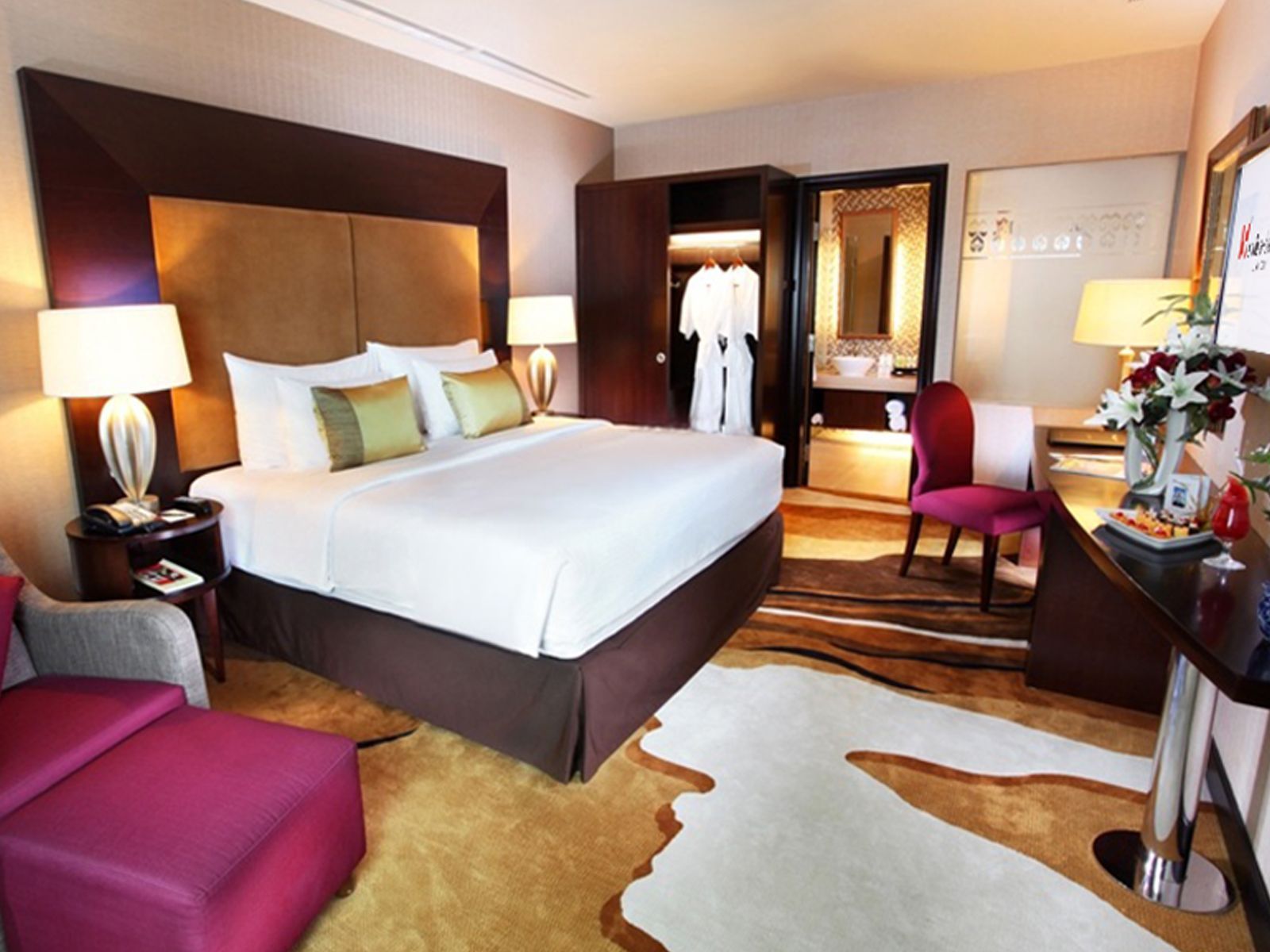 Unwind in our 72 sqm Suite Rooms—separate living and bedroom, spacious en-suite bathroom with shower and bathtub, and full range of amenities.