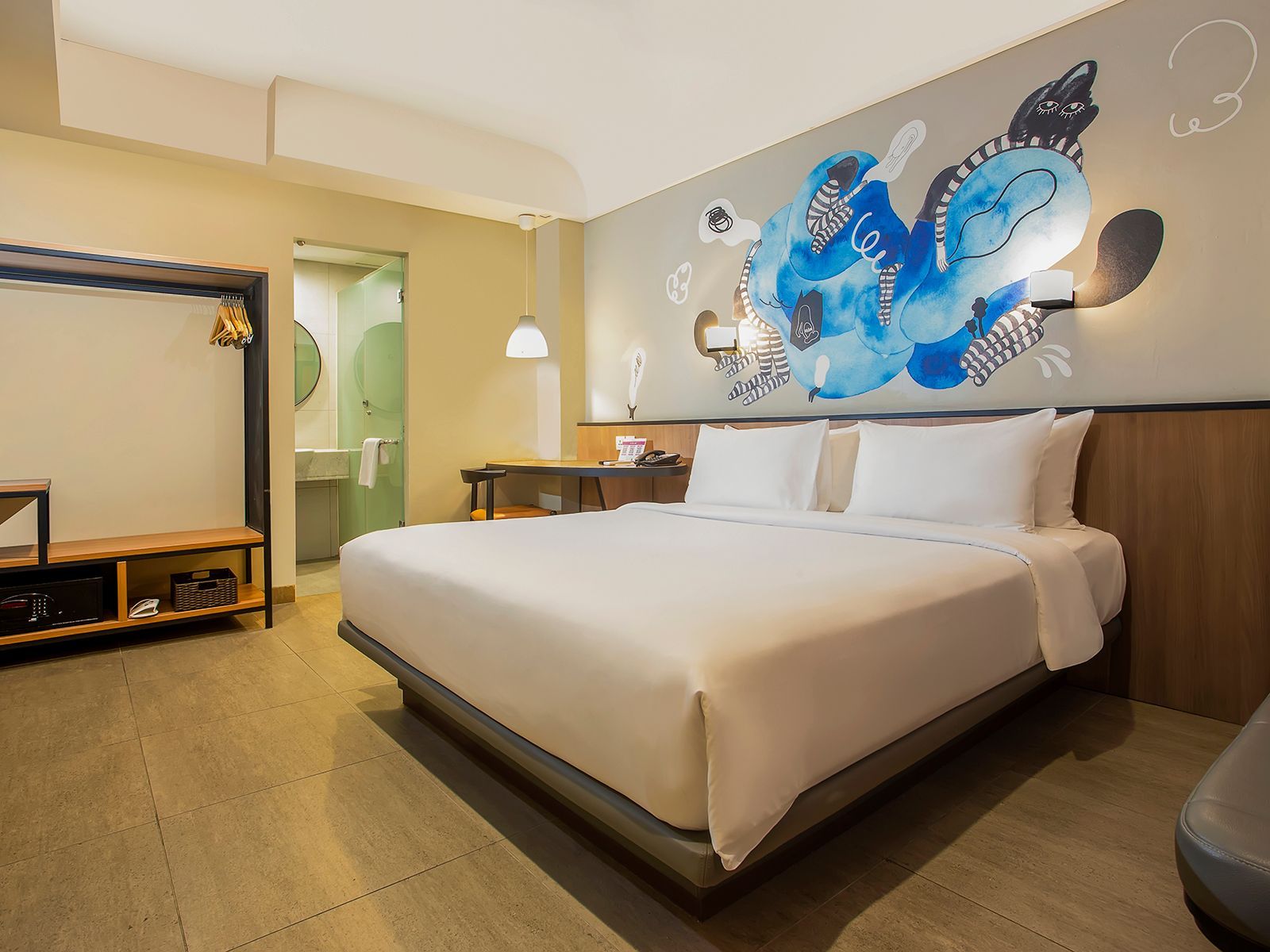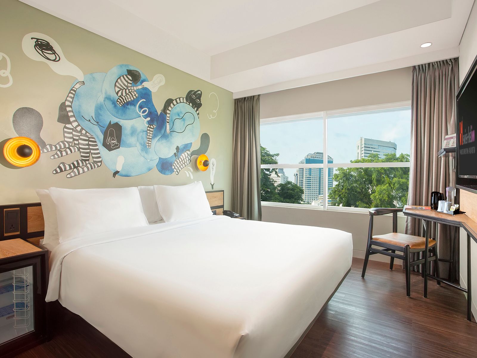 Our warm, modern Deluxe Rooms offer a king or twin beds, Wi-Fi, LED TV, mini cooler, and standing shower.