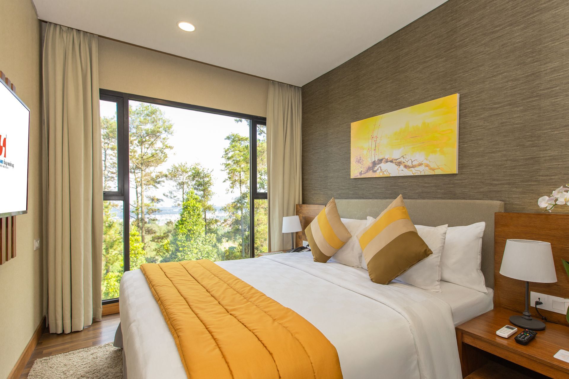 Our spacious One Bedroom Suite features a queen bed, large living and dining area, VIP amenities, and a coffee machine—no balcony included.