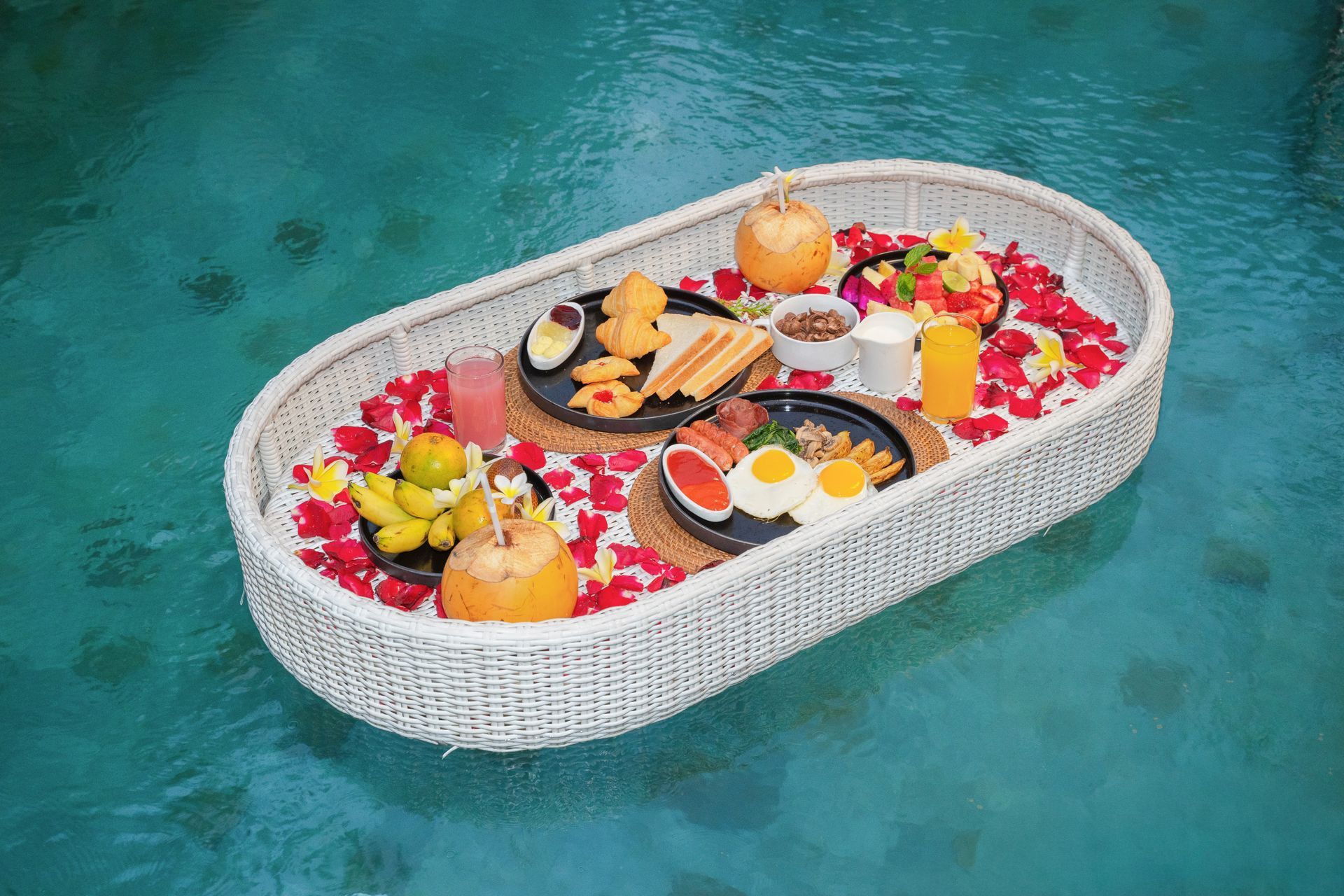 Hãy bắt đầu ngày mới với bữa sáng ngon miệng được phục vụ ngay tại hồ bơi riêng của bạn, bao quanh là khung cảnh xanh mát của Pengosekan.