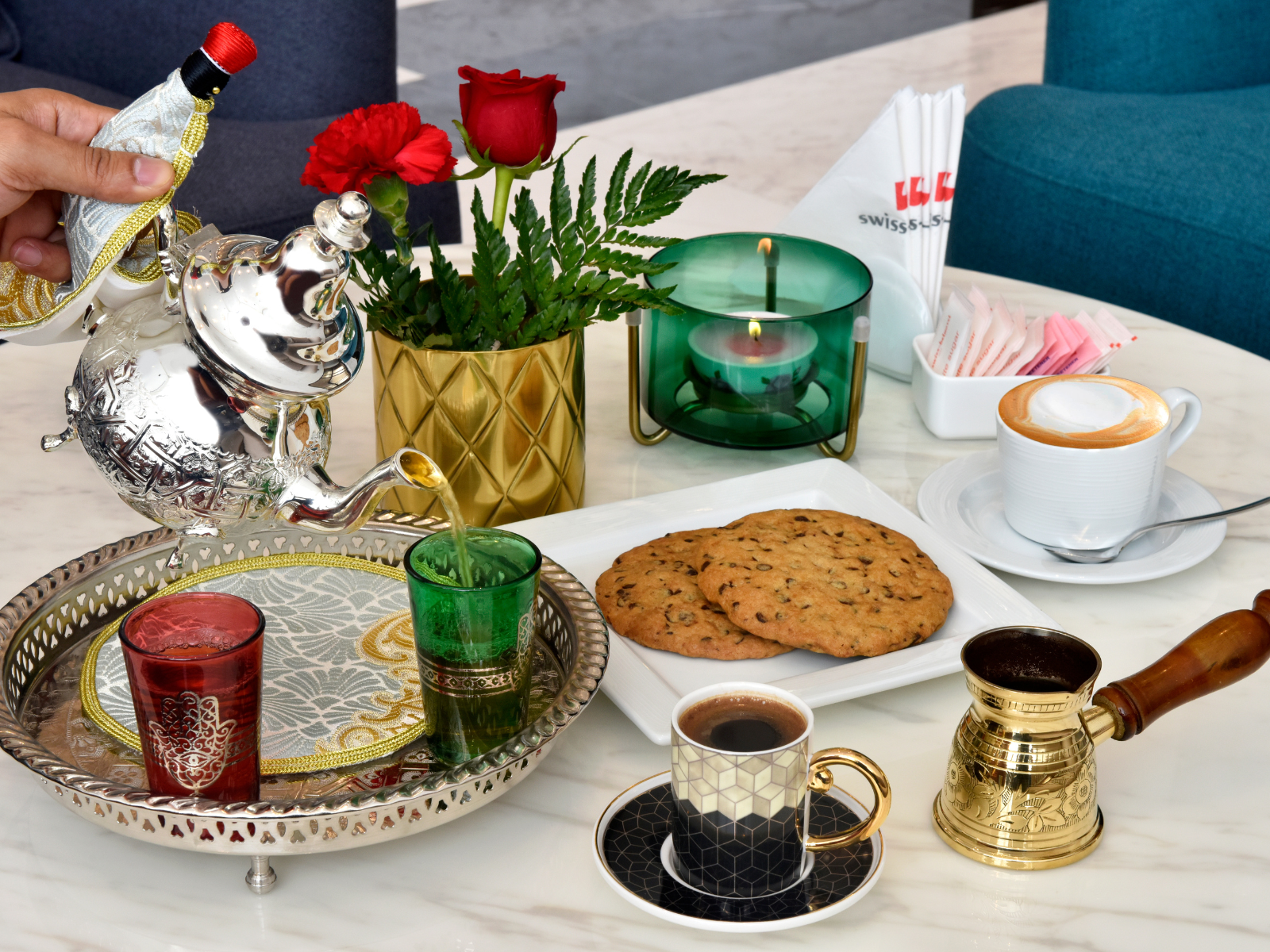 Dịch vụ shisha phục vụ hàng ngày từ 14:00 đến 2:00 sáng, cho phép khách thư giãn và tận hưởng trải nghiệm hồ bơi đến tận đêm khuya.